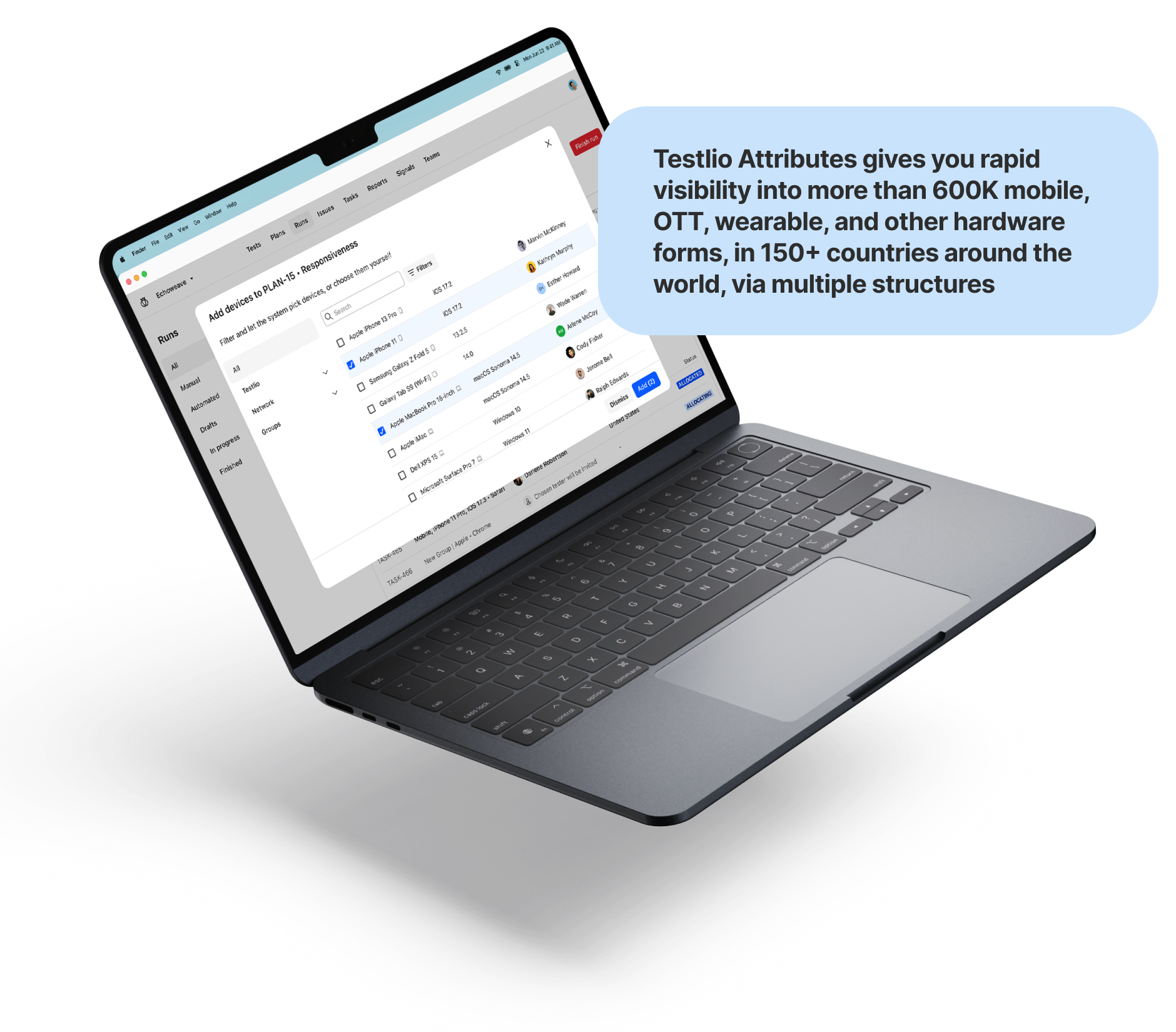 The Testlio Distributed Device Network provides access to more than 600K hardware devices across more than 1.5K unique make/models. No company in the software testing industry offers more device coverage opportunities than Testlio.