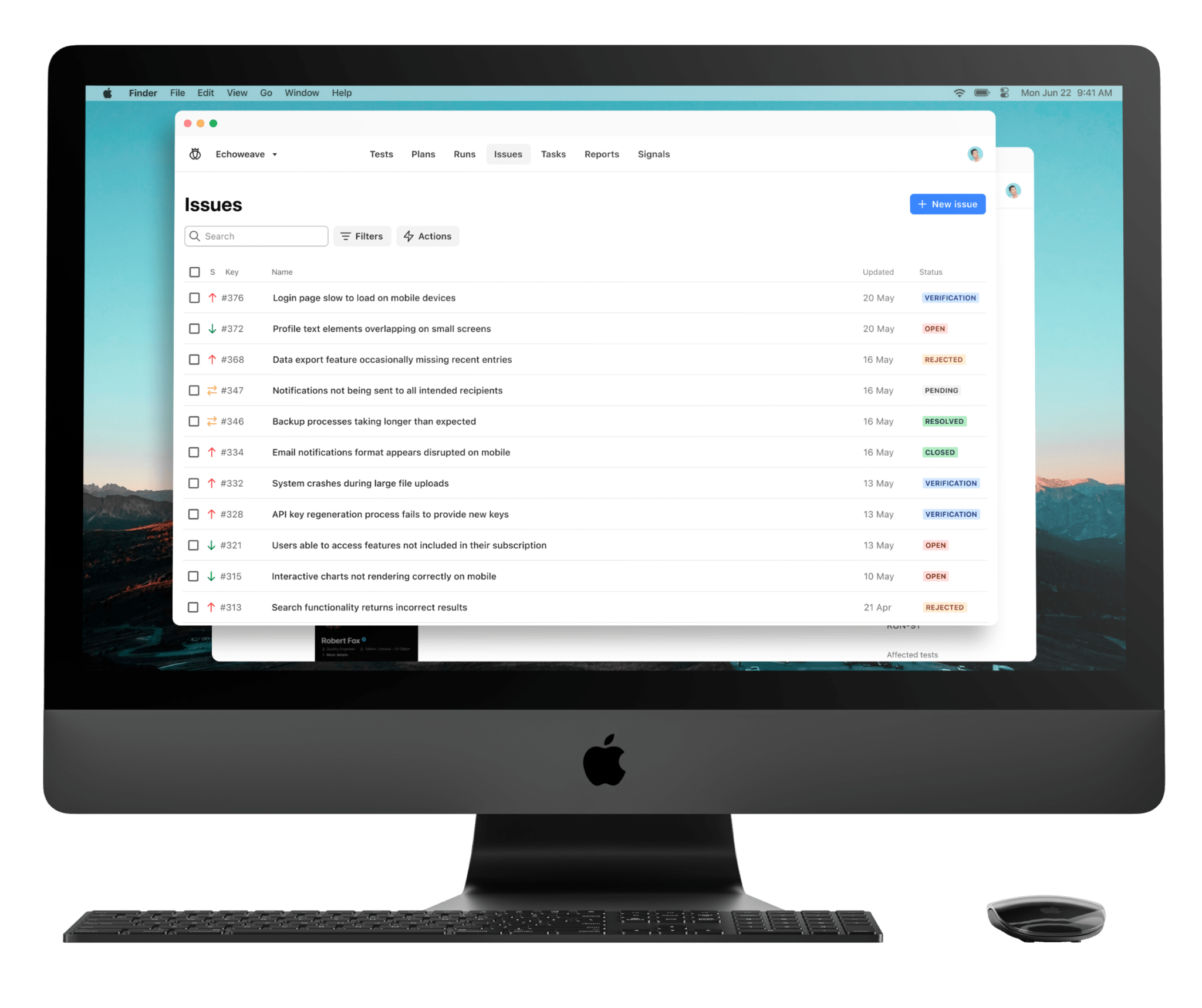 Aligned issues are automatically escalated to tracking and workflow systems like JIRA; ticket updates are synced back into Testlio, ensuring continuous monitoring.